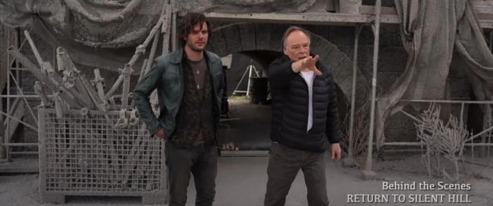 △ 导演克里斯托夫·甘斯(右)与男主角杰瑞米·艾文在《重返寂静岭》拍摄现场
